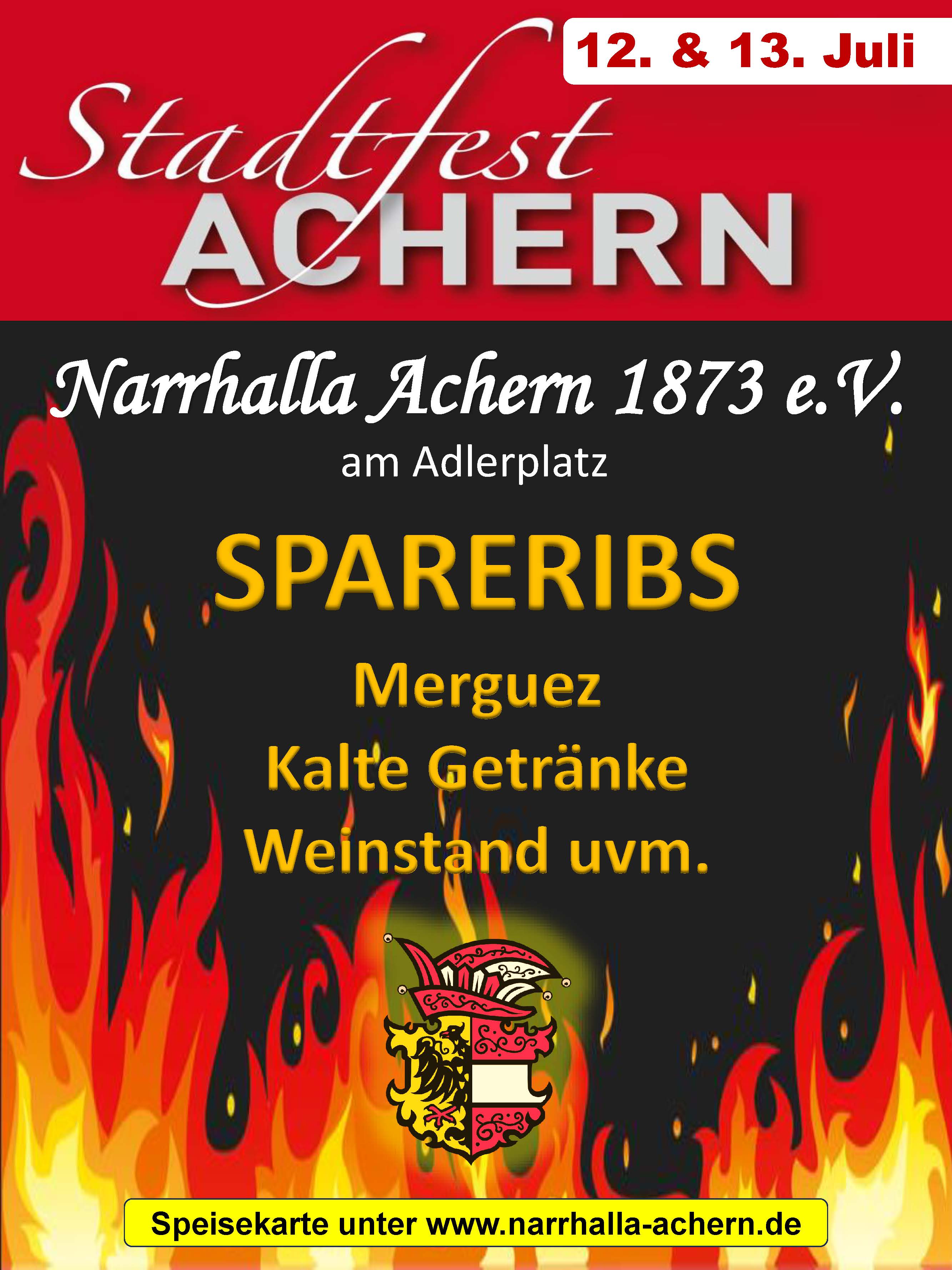 Auch in diesem Jahr ist es wieder so weit: Das Stadtfest in Achern öffnet seine Tore – und mittendrin, wie es sich gehört, ist natürlich die Narrhalla Achern mit ihrem beliebten Weinstand und den legendären Sparribs vertreten!